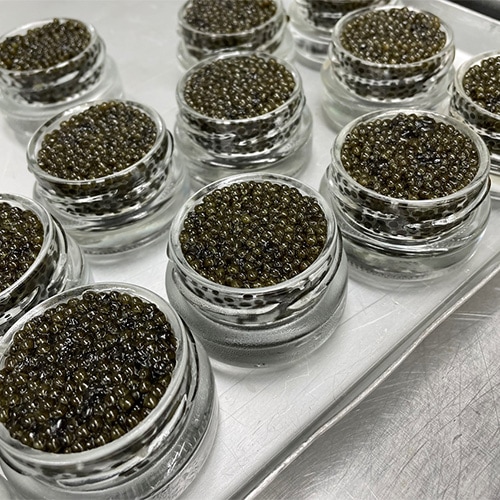 東京ドーム43個分の広大な養殖場で、清澄な水と厳格な環境管理のもと、丹念に育て上げられたチョウザメ。 その中から選び抜かれた卵のみを使用し、徹底した衛生管理のもと一粒一粒を丁寧に仕上げました。